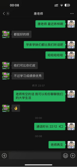 小组同学表示,当年的高中生活仍历历在目,看到老师熟悉的面孔,听到亲切的声音,仿佛又回到了紧张有序的高中时代。同学们一一向老师汇报了在大学的学习、生活情况,分享了自己的成长与收获。同学们向母校老师表达了感激之情,始终没有忘记高中时期老师们的辛勤付出和教诲。在高中阶段,老师的悉心教导,不仅打下了坚实的知识基础,而且还培养了良好的学习习惯和品格。在与老师们的交流中,深切感受到关爱和期望。母校老师希望我们在大学里努力学习专业知识,不断提升综合素质,为将来进入社会打好基础,为国家多做贡献。