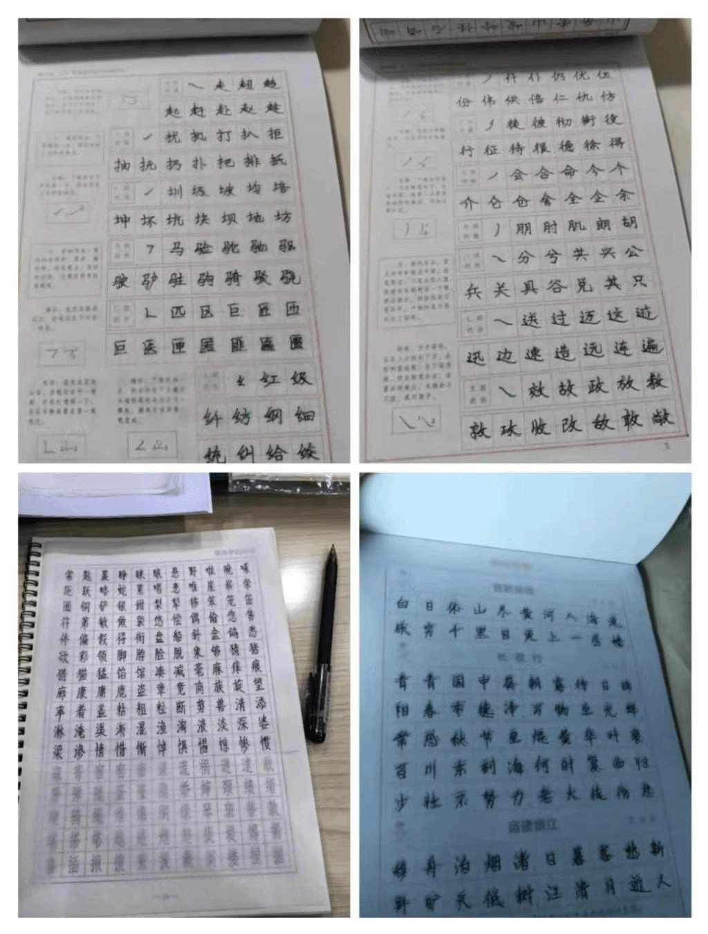 除此之外我组各成员也坚持每天练一篇或两篇字帖,不断的熟悉字帖上字的行笔轨道和字形结构,慢慢的将自己不太好看的字迹纠正过来,练字要经历一个反复训练,逐步提高和形成书写技巧的过程。在这个过程中,小组成员相互交流后都反应对练字有一种枯燥感,练习时间难以保证,效果不明显。所以在接下来的时间里我们必须加强练字意志品质的锻炼,用耐心、恒心、信心克服练习过程中遇到的困难,做到忙中抽闲,持之以恒。要长计划、短安排,求质不求