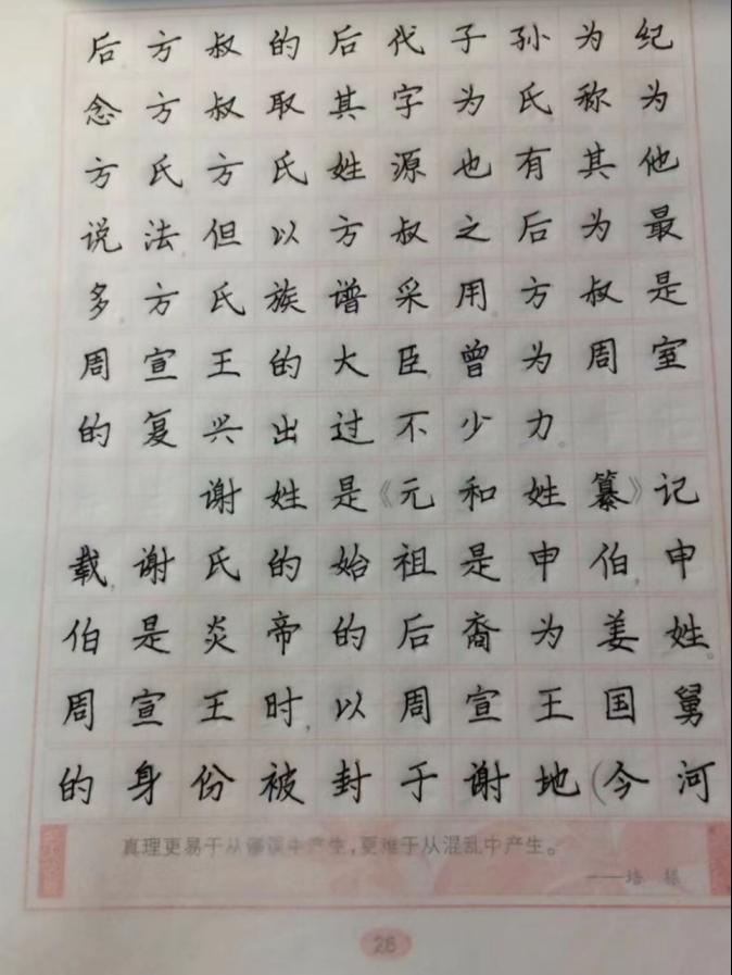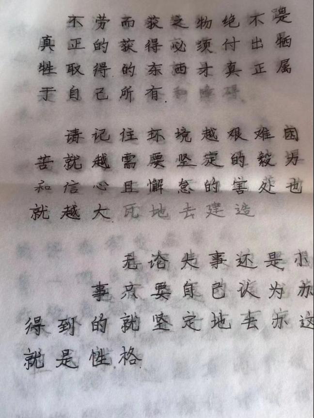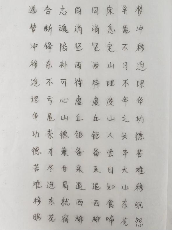 本周为社会实践学期的第一周,JZ-0443小组成员祁宇、周朝阳、栗宇通、安俊淇按照计划进行了钢楷临摹任务和社会实践学期安全教育的学习,本小组共完成钢楷临摹20份。在当今的素质教育中,写字帖不仅有助于培养我们的观察力和动手能力,还能提升审美情趣。通过临摹,我们可以更直观地理解汉字的结构美、书法的流动美。在这个科技日新月异的时代,我们不应忽视传统文化的价值。写字帖作为连接过去与现在的桥梁,为我们提供了一个感受传统文化魅力的窗口。它不仅有助于提高个人的书法技艺,更是对历史与文化的传承。因此,我们更加珍惜学校提供的这一次宝贵的实践机会,能够让我们回炉重造,练得一手好字。