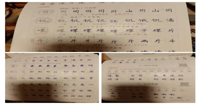 社会实践学期的第一周,我们小组完成了钢楷临摹并按时按要求进行打卡,在第一天的钢楷临摹,由于每页不到120字,就不明白该如何进行打卡,我们的指导老师赵新荣,很是耐心的告诉我们,将所有的字拍一张图片,然后进行上传。虽然这是一个很微小的事情,但是,对于我们大一新生来说,第一次进行社会实践学期的学习,好多都没有头绪,通过这件事,让我感受到老师的时刻耐心、关心,昨天赵新荣老师组织我们召开指导交流会,在会上,老师让学长分享社会实践学期的学习经验和注意事项,给我们很大的帮助。让我们体会到我们不是“孤军奋战”,而是“团队式学习”。在老师和学长的督促、帮助下,我们定会保质保量的完成项目作业。