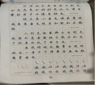 时间过的飞快,转眼,社会实践学期的第一周已然接近尾声,而杨小川小组成员也在有条不紊的开展学期任务。在学期开始,他们小组就对学期任务进行了合理的计划,在第一周主要是开展了钢楷临摹和劳动实践活动。