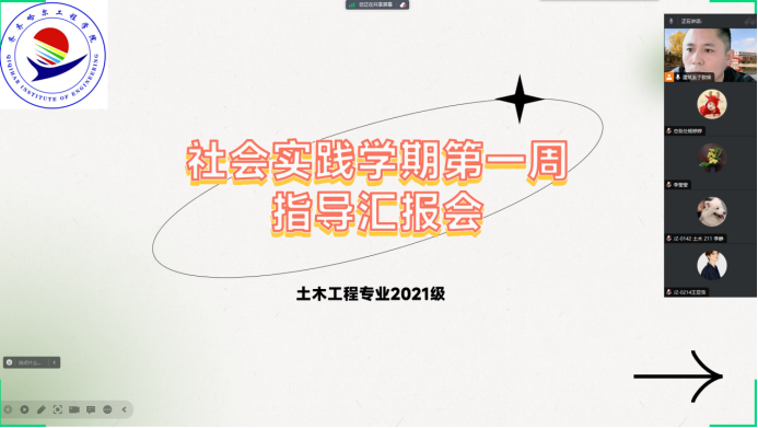 1月14日下午16时,辅导员于敦续利用腾讯会议平台组织召开社会实践学期第一周指导汇报会,18名生涯导师和土木21级所有小组长参加会议。