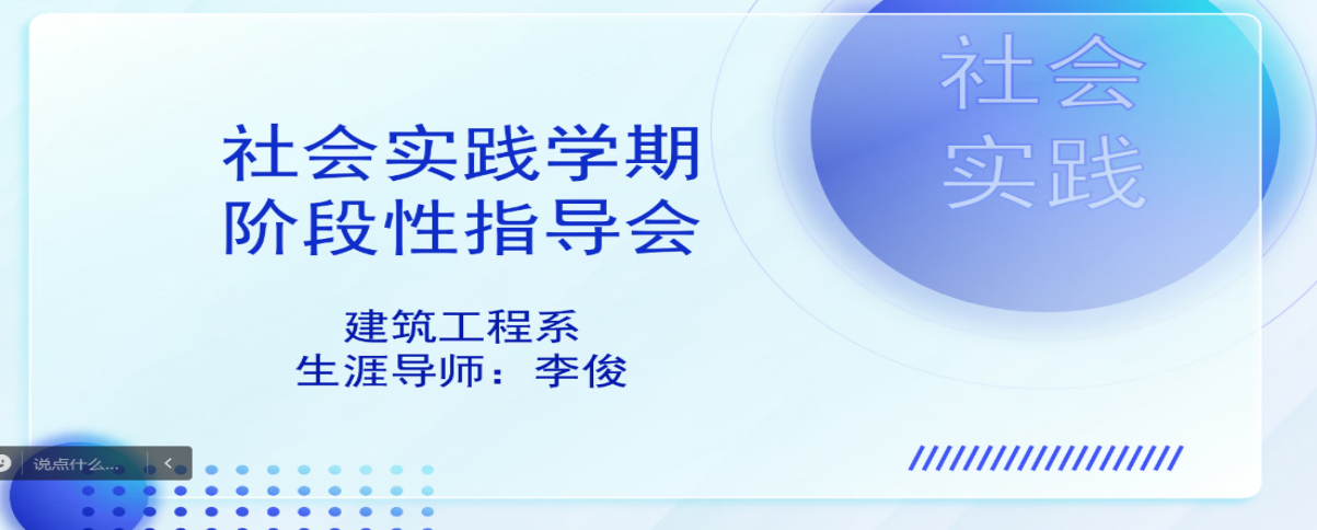 社会实践学期第一周临近尾声,为了监督、指导同学们在社会实践中的各项活动,李俊老师在1月13日晚19:00组织所负责社会实践学期的23名生涯学生,以腾讯会议的方式召开了2023-2024学年社会实践学期第一周阶段性指导会。会议由李俊老师主持,指导的成员全部出勤。