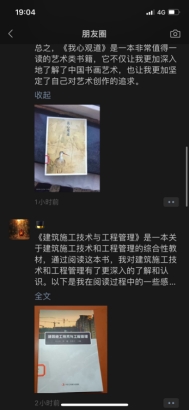 小组成员梅旭阅读一本专业书籍《建筑施工技术与工程管理》通过阅读专业书籍提升专业素养,对于施工技术和工程管理有了更深入的了解和认识,也让他明白自己专业能力方面的欠缺,在接下来的学习中能更有针对性的提高。