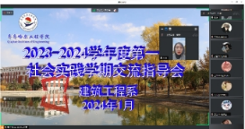 为督促监督各组长的工作,了解各位同学在社会实践学期第一周的任务完成情况,建筑工程系辅导员蔡爽老师、陈星月老师及各学生的生涯导师于2024年1月16日在线上为社会实践学期各组长开展社会实践学期交流指导会,本次指导会由陈星月老师主持。