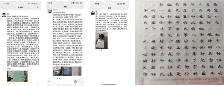 首先我们依旧会按照每天的计划进行字帖练习目前大家的进度是每人8页,并进行了打卡和反馈。其次是阅读书籍以及写感悟,在这第二周大家都继续了自己的书籍阅读的工作。然后小组的同学中有还有人参加了烹饪实践课跟着课程做了腊八蒜和腊八粥,学习烹饪可以让我们更加理解父母日常的付出,也会增长我们的本领。