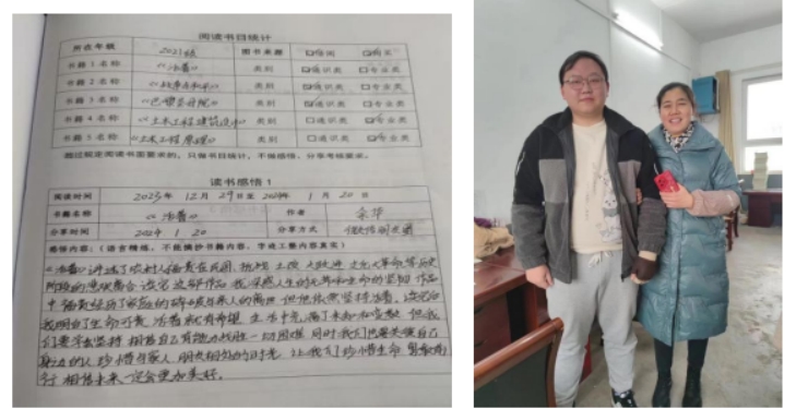 汪志豪同学进行了母校回访,在语文老师的陪伴下,参观了昔日的校园,曾经学习的班级,充满了回忆,并向语文老师讲述了他的大学生活,大学校园的美丽景色及蕴含的校园文化;讲述了学校食堂的免费米饭,免费餐;讲述了老师的教学方法、导员的关心照顾、生涯导师的指引帮助。老师很是开心,并表示能在这样的学校里学习、生活真是幸运,要珍惜学习机会,不要辜负学校的培养,并祝福学校发展越来越好。