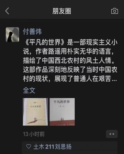 小组的付善炜同学阅读和分享书籍《平凡的世界》