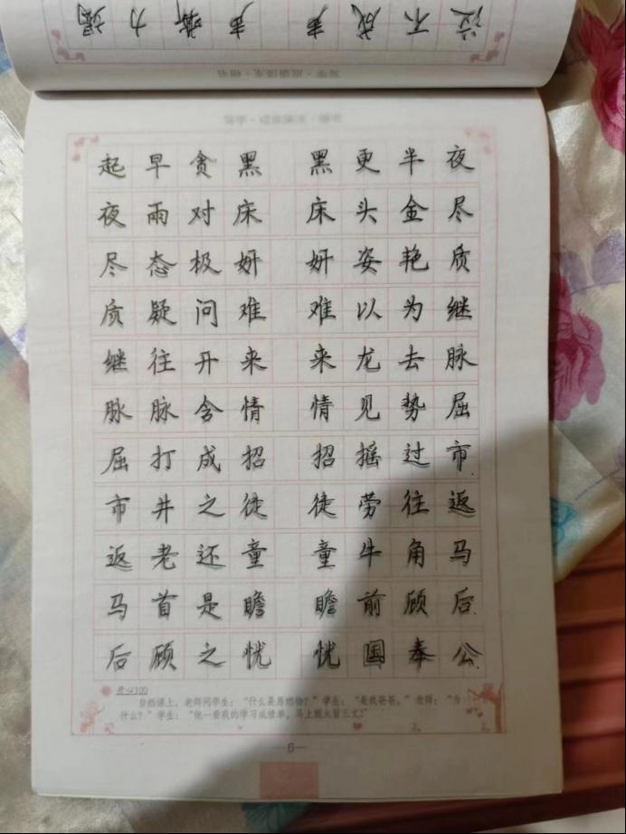 经过第一周的实践,我们已经逐步投入社会实践学期。钢楷临摹是是社会实践学期的首项任务,钢楷临摹考验的是耐心,我们仍需坚持,一笔一划去认真书写,在临摹过程中静下心来,戒骄戒躁,受益良多。