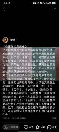 《中国学术思想史》让我们明白中华思想文化是中国传统文化得核心内容,是百川归海,相互触摄,绵延至今的历史产物。人不是生来就有思想的,思想是通过勤奋的学习和思考得来的。《杀死一只知更鸟》告诉我们一只知更鸟会死,一群知更鸟终究能继续飞翔,它们有飞翔的能力,有翱翔的意义。有人会托起它们的身躯,目送它们越飞越高,越走越远,直至那个所有鸟类共同栖息的花园。
