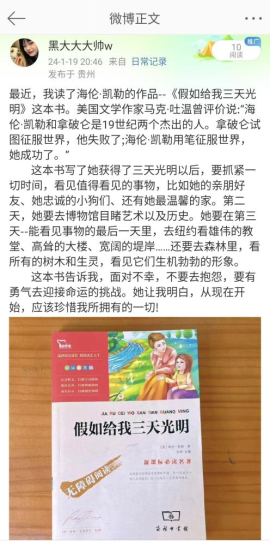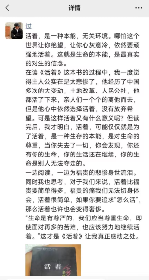 本周是开展第四学期的第二周,在本周内,我们的小组成员每天都坚持阅读,其中小组成员王凤艳同学在本周阅读了海伦·凯勒的作品《假如给我三天光明》,小组成员刘惠科同学阅读了余华的作品《活着》,在读完这两本书后,两位同学分别在社交软件分享了一些自己的看法。小组成员黎小庆同学在本周与高中教师进行了线上交流,分享了她在大学期间的生活以及对于接下来生活的一些规划。