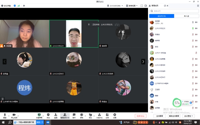 2024年1月21日19:00,土木工程专业生涯导师李微娜老师通过腾讯会议召开读书分享交流会,共有18名同学参加。