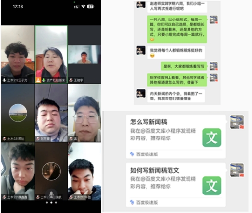 赵老师肯定了同学们的成绩,也指出问题和缺点,特别是针对报道撰写上,赵老师邀请我们参加胡士秀老师的讲座,并在网上搜索如何进行新闻撰写的文章,发到群里,供大家参考、交流,以提高我们的报道水平。相信,在赵老师的指导下,我们将会越来越好,我们也会努力学习,实现自己的梦想。