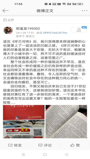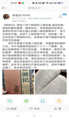 郑富友深入阅读了经典名著《西游记》和《呼兰河传》,他通过这次阅读,不仅拓宽了对中国古典文学的理解,还体验到了其中丰富的思想文化内涵。为他的人生观和价值观带来了新的启示。