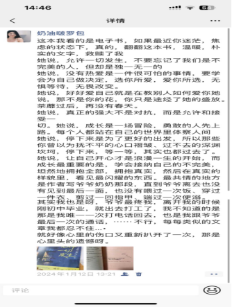 小组成员工管222班罗旭、陈鹤月、周罗干、王锐同。每日认真完成,未出现拖沓状况,本周的读书交流任务已完成,通过每日的读书分享大大提高了每个人的阅读知识能力。本组成员罗旭同学这周主要进行母校回访,再次踏进她曾经学习生活的地方竟还有些激动,离开高中母校已有数年,每当回忆起那段青涩的岁月,心中总是涌起一股淡淡的怀念之情,这次,有幸回到母校,再次感受那份青春的气息,让我不禁感慨万干。