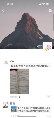 齐佳鑫同学读的书是《钢铁是怎样炼成的》,在上周张老师开会的时候提到了这本书。我忽的想起在初中时我也读过一遍这本书,时光荏苒、岁月如梭,在多年后他再次读起这本书,又有不同的收获。在这本书中,主人公保尔柯察金的种种事迹,不愧于那句“行走的钢铁”他体会到;一个人的成功并非偶然,而是源于坚定的信念和不懈的努力,在现实生活中,我们也应该学习这种精神,勇敢的面对挑战,努力追求自己的梦想。