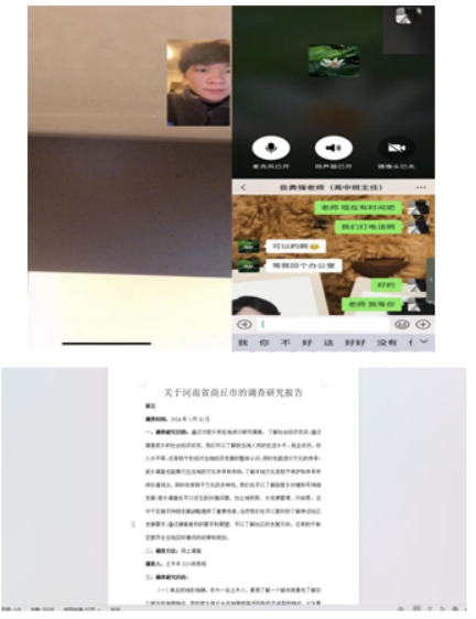 小组组员李闯同学进行了家乡走访调查并完成了研究报告。通过对家乡的走访、调查,了解到家乡的社会经济状况,当地人民的生活水平、就业状况、收入水平,以及土地利用、水资源管理、污染等环境现状,形成对当地经济发展的整体认识。通过家乡调查,了解到家乡的文化传承和传统,从而加深对家乡的感激之情。通过调查居民的需求和期望,以及社区工作人员的工作方向,了解家乡社区发展需求及发展方向,有助于提前了解并适应新的政策和规划。