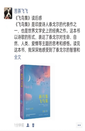 在第三周的学习活动中,同学们积极展开了第一本书的阅读及分享,柴晓轶阅读了《草房子》,体会到了生活中的爱,生活中的真,生活中的美。时文昊阅读了《飞鸟集》,让他在人生的道路上更加坚定和自信。