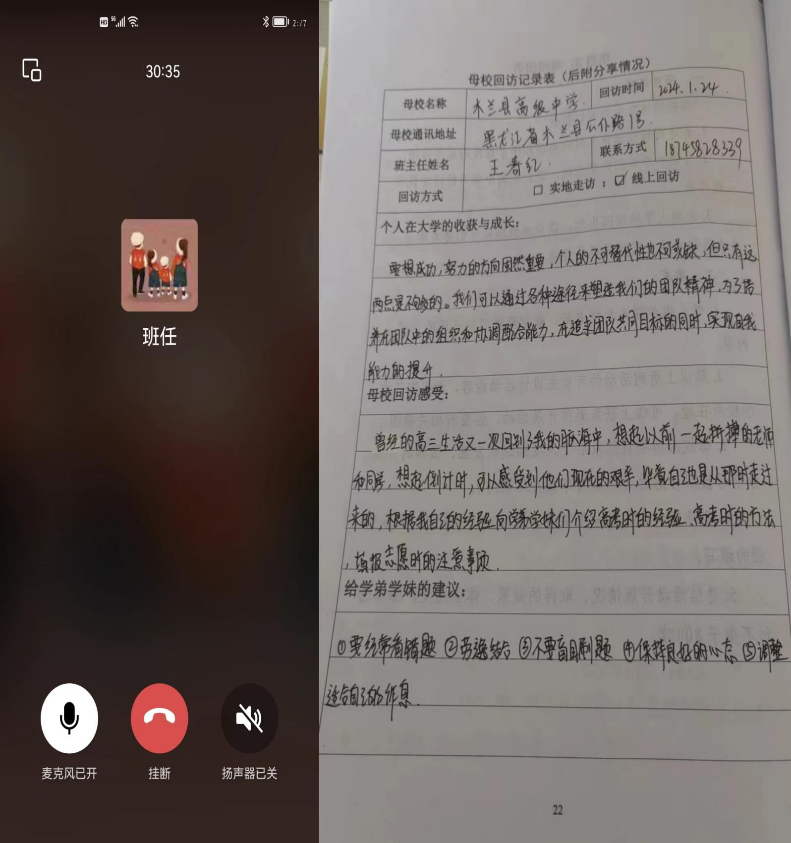 2024年1月24日,由于学校不允许实地走访,土木224班张浩彬同学选择线上回访母校,以表达对母校的思念之情。
