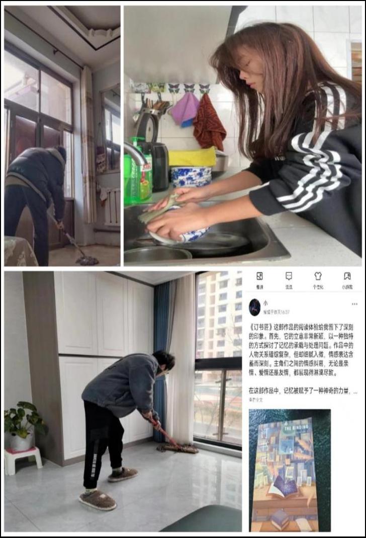 劳动实践:建筑系工管JZ-0303小组各成员在社会实践学期第三周完成了各类家务劳动,从此次家务劳动中深刻体会到了父母的辛劳,同时也锻炼了我的耐心和责任心。通过自己的努力,我可以感受到成就感和满足感,这也让我更有动力去分担更多的家务,减轻父母的负担。家务劳动不仅教会了我如何照顾家庭,也是我成长和学习的重要过程。建筑系工管JZ-0303小组黄正浩同学也完成了他的第二本书《订书匠》的阅读分享。