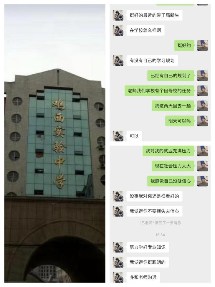 同组的张育航同学也在本周进行了母校回访,与老师交流了进入大学后的收获和现有问题。老师不仅关心他的学业,还关心他的身心健康。他对老师的栽培和教诲铭记在心,虽然有时候言辞直接,但却是终身受益。回访母校后,他们感慨老师的辛勤付出,师生之间的情谊令人难以忘怀。