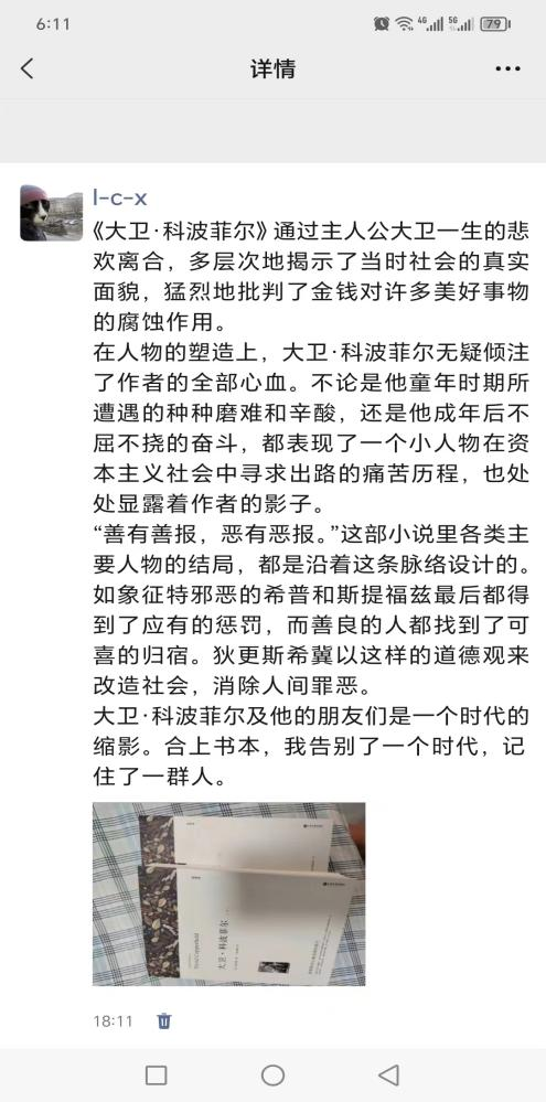 小组成员由李晨旭、张煜舒、贺旭、张洪玮4名同学组成,在开展读书分享活动时,大家分别畅谈了自己喜欢的书籍,并在讨论中,分享了自己选择所喜欢图书的理由和标准,在交流中相互学习,深受启发。大家分别阅读了《洞见不一样的自己》《安娜•卡列尼娜》《大卫•科波菲尔》等书籍。