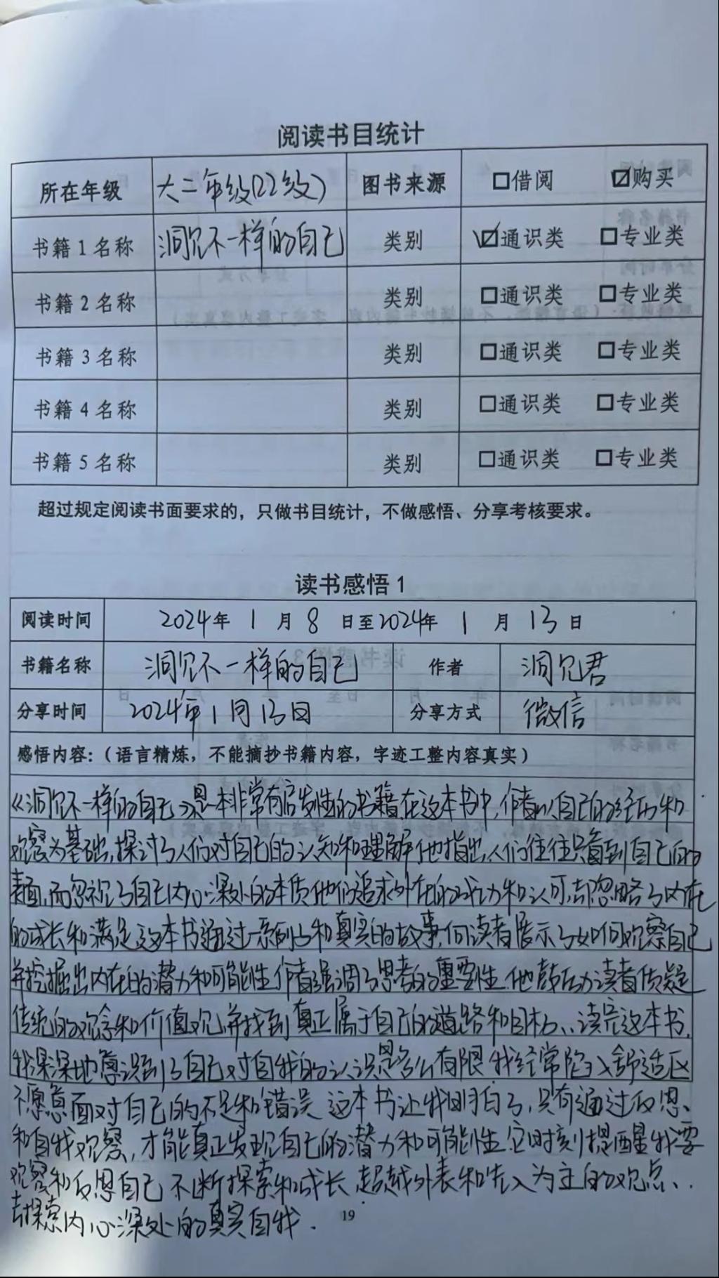 同学们通过读书接受了众多思想沉淀滋养的心灵和大脑,拥有了更开阔的视野,也向世界打开了自己的心胸,看到了这个世界更多样的人生。社会实践学期已过去两周时间,大家一致表示,读书是一辈子的事情,要努力完成社会实践学期的每一项任务,为融入社会、服务社会打好基础。
