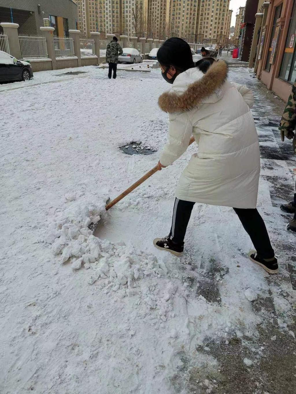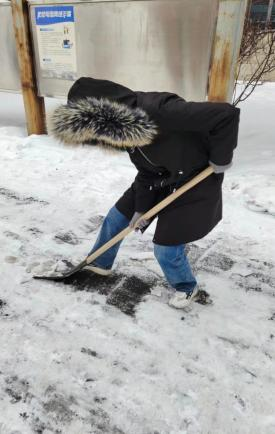 同学们首先与所在社区村屯工作人员取得联系,并带着工具积极投入到劳动中。他们不畏严寒,认真清理积雪和冰层。经过几个小时的劳动,街道上的积雪被清理干净,为居民们出行开辟了安全通道。