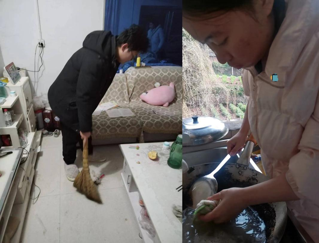 党政和王婷婷同学本周进行了家务劳动。他们说,家务劳动时间我们力所能及的,但它使我们从劳动中获得成就感、体验和理解父母的辛苦;做家务的人能学到生活的基本技能,能提高生活自理自立的能力。父母们都说我们长大了!