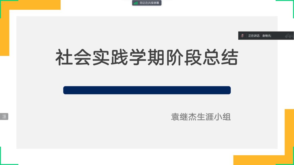 1月27日19时,生涯导师袁继杰老师组织建筑工程系风景园林专业生涯小组展开社会实践学期阶段总结汇报,生涯小组共计21位同学,采用腾讯会议线上的形式展开。