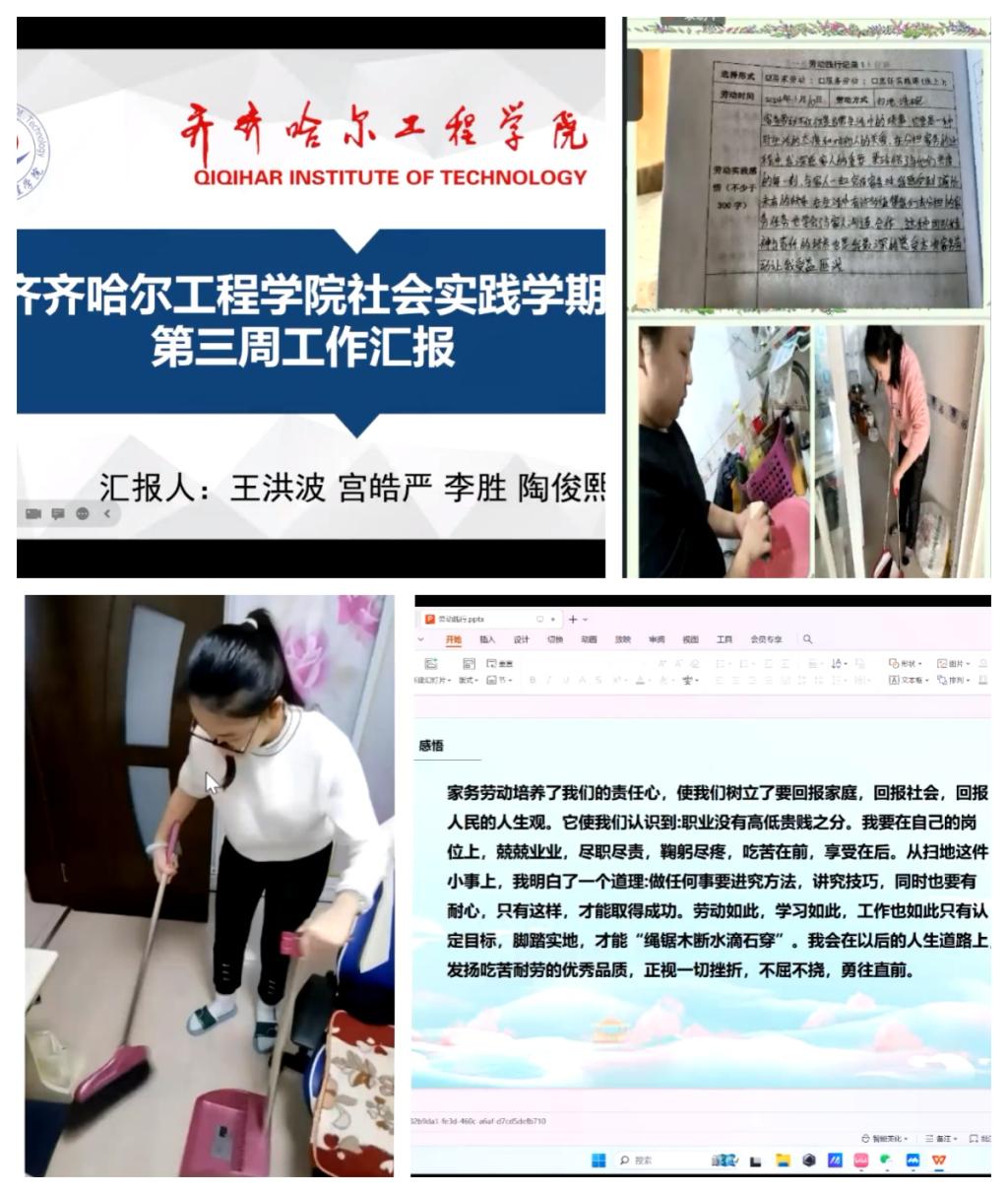 通过居家劳动,同学们体会了家长的辛苦,更加珍惜美好的生活,也更加理解学校设立社会实践学期的意义,土木221班宫皓严同学说:“居家劳动培养了我的责任心,以前一直都是父母做家务,现在是我回报父母、回报社会的时候了。我会在以后的人生道路上,发扬吃苦耐劳的优秀品质,正视一切挫折,不屈不挠,勇往直前。”土木211班冯越同学说:“与家人一起做家务, 是一种难得的家庭时光。每一次劳动都是一次对生活的感悟和思考, 每一次收获都是一份对未来的期许和动力。”