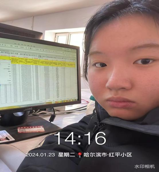 1月23日,孙奥小组张宇欣同学开展社区志愿活动,她深入哈尔滨红平小区所在社区,作为一名学生志愿者,参与到社区的工作当中去。