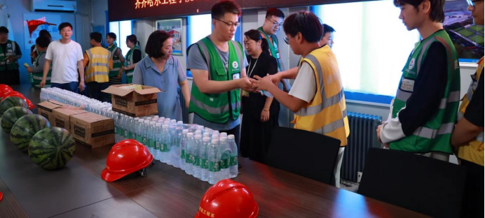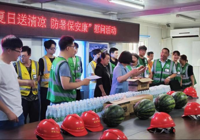 活动中,建筑系慰问组一行分别来到北区中建二局项目和中能电力第四分公司建设现场,将带来的防暑降温物品一一送到在北区建设工地师生手中。慰问组与北区实践学生相互交流和沟通,在生活角度对学生们进行关心,督促夏日注意避暑,补充水分,小心饮食,同时,向实践班同学发放夏季防暑降温常识宣传单,叮嘱大家在高温天气下工作学习,始终要将安全放在首位,在取得优秀实践成果的前提下,保持良好身心状态,去迎接每一次的挑战。