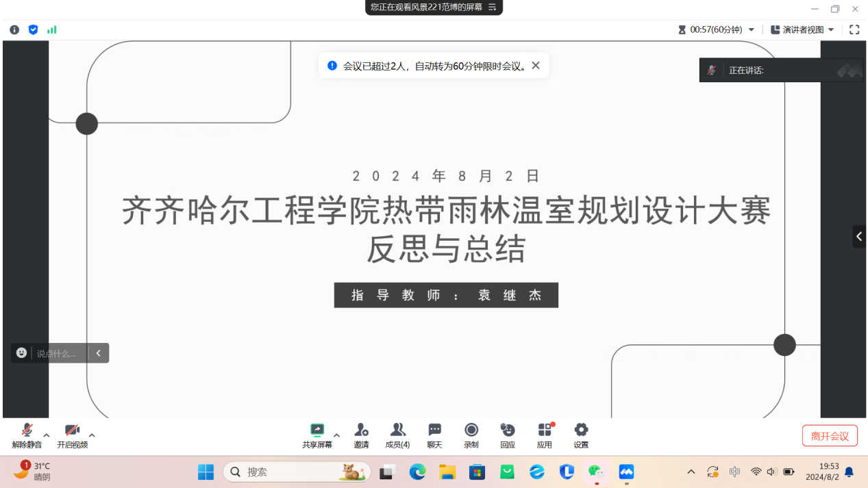 随着时间的流逝,齐齐哈尔工程学院建筑工程系以校园北区为基础举办的热带雨林温室设计大赛逐步接近尾声。8月2日下午,风景园林专业成功召开大赛反思总结会议。本次会议旨在全面回顾大赛过程,分析存在的问题与不足,总结经验教训,为未来的活动提供经验与指导。