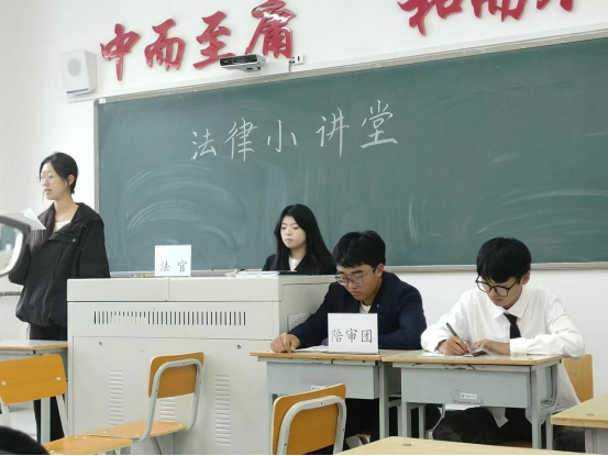 随后朱老师提出了一些问题,同学们都积极踊跃的回答。紧接着是同学们自主安排的一场法律相关的情景剧,生动形象的展现了如何知法用法,如何用法律条款维护自己的合法权益。同学们精彩的表演,以及有趣的情景和丰富的法律知识,让同学们记忆深刻,从中体会到法律的重要性以及如何运用法律。