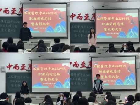 优秀获奖学生代表也上台分享了自己的感悟。他们表示,职业前瞻活动让他们对工程管理专业有了更深刻地认识,也明确了自己未来的职业方向。通过参与活动,他们不仅学到了专业知识,还锻炼了团队协作能力和解决问题的能力。他们感谢学校和老师们为他们提供了这样一个宝贵的机会,并表示将继续努力,为工程管理专业的发展贡献自己的力量。