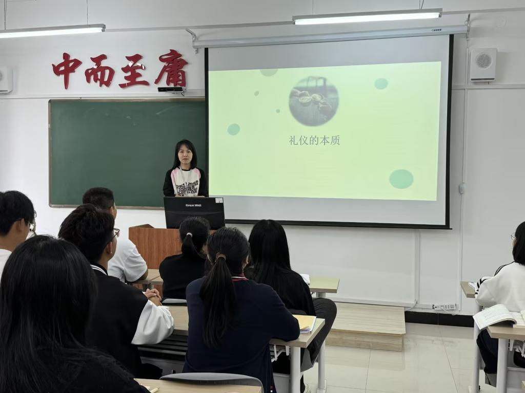 王微双老师以“职场礼仪”为主题进行了专题讲授,课程中不仅仅向新生们讲解了职场中的各项重要礼仪,同时强调了生活中的种种礼仪,为新生们在未来四年的大学生涯中的交际交往起到了示范作用。