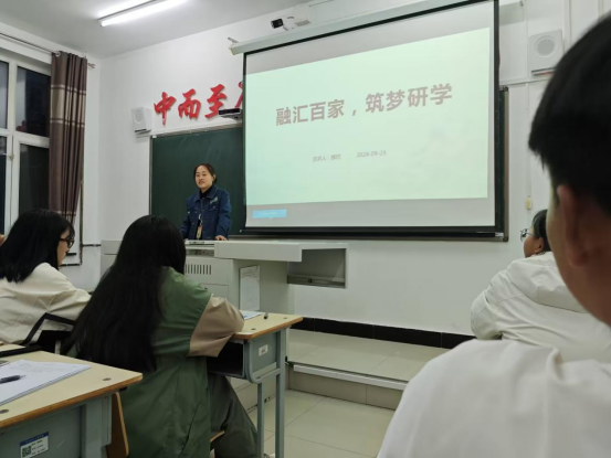讲座伊始,同学们积极踊跃的回答郝老师提出的为什么要考研以及同学们自己的理想。同学发言结束后,郝老师根据同学们的回答为同学们详细解释了为什么要考研。