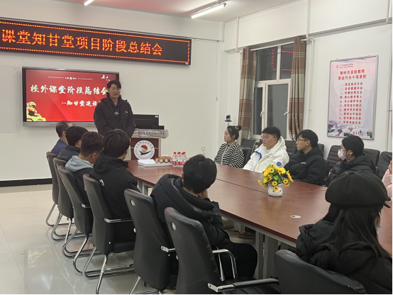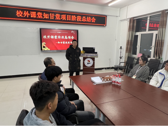 会议中,校外课堂-知甘堂项目三个学习小组的组长分别进行阶段总结。都子豪同学表示:在校外课堂中我们的学习的提升是课堂学习成果的具象化,更是实际工艺的理论化,我们将课堂中学习的知识运用到实际,将实际的施工转化为我们学习的知识,这种学习的提升是质的提升,是不断丰富自身能力的提升。