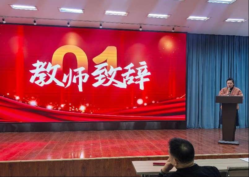 建筑管理工程系工程管理专业负责人曲梦露为本次首届工程造价技能应用竞赛暨首届环保材料创新创意模型设计大赛-双赛启动仪式致开幕辞,致辞中展现出曲梦露老师对大赛的殷切期望与对同学们的鼓励,希望同学们要勇敢展现自己的才华。