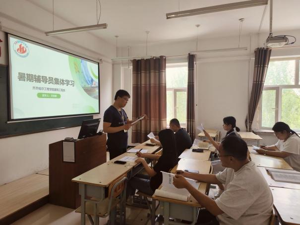 为进一步加强建筑工程系辅导员队伍建设,全面提高辅导员综合素质和育人工作水平,增强教育服务的针对性、时效性,按照齐工程学〔2024〕23号关于印发《齐齐哈尔工程学院辅导员素质能力提升行动工作方案》的通知,7月3日建筑工程系依托鸿雁辅导员工作室举行专业实践学期集体学习,建筑工程系党总支副书记刘贤鹏领学。