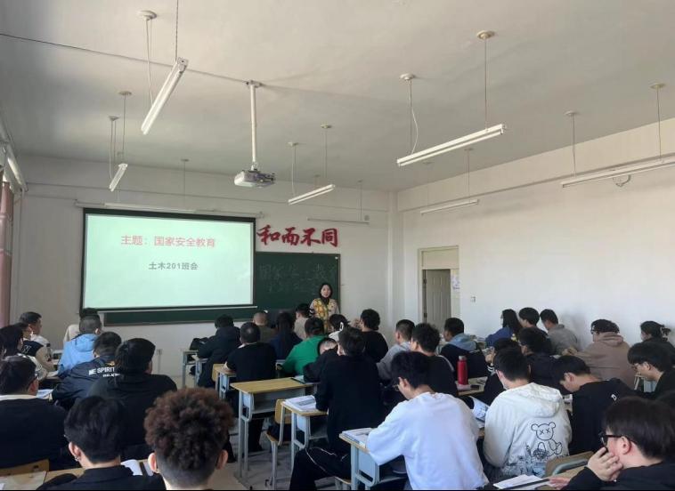 在班会上,辅导员蔡爽老师以国家安全为切入点,利用多媒体等方式进行安全宣传、讲解。对什么是国家安全和总体国家安全观、国家安全包括哪些方面、设立全民国家安全教育日的意义、如何做好国家安全的遵守者和捍卫者等重要知识进行了介绍,全体学生接受了一次较为全面深入的国家安全知识教育。