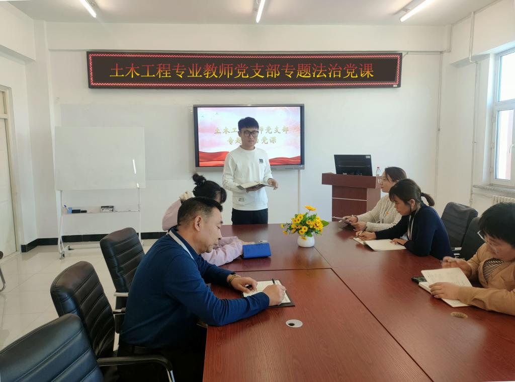 为深入学习贯彻习近平法治思想,进一步增强土木工程专业教师党支部全体党员的法治意识,提高法治素养,土木教师党支部于2023年12月1日在2教2409组织进行法治党课,全体党员参加了此次活动。