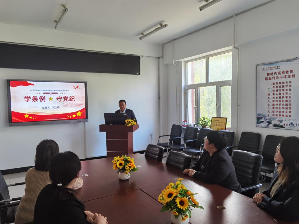 为了进一步加强党的纪律建设、推动全面从严治党向纵深发展的重要举措,5月15日土木工程专业教师党支部组织全体党员开展了一场深入学习“学条例、守党纪”专题教育活动。本次党课由土木工程专业教师党支部书记贺全德老师主持,建筑工程系党总支书记徐明老师、建筑工程系党总支宣传委员钟美慧老师、土木工程专业教师党支部副书记张晶晶老师以及党员何敬峰老师参会。