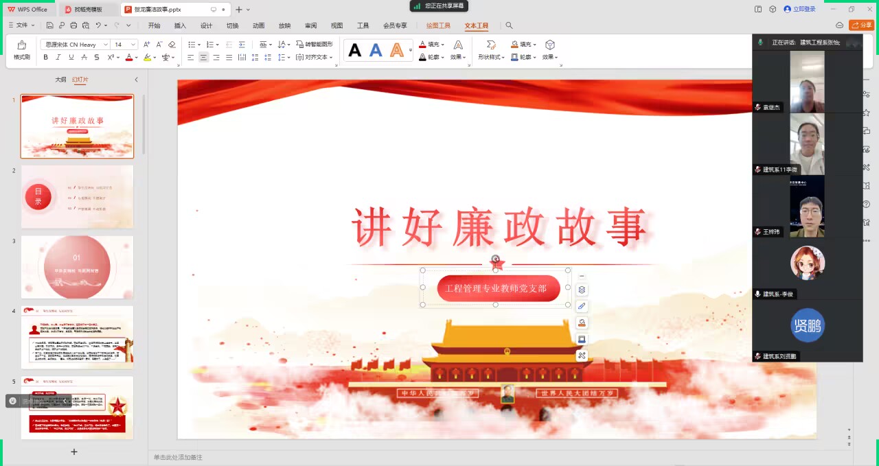 为教育引导党员干部增强廉洁自律意识,筑牢拒腐防变的思想防线。工程管理专业教师党支部于5月22日线上召开“讲好廉政故事”主题党日活动。活动由李盼盼主持,党支部全体党员参加。