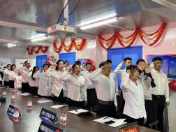 视频学习结束后,中建二局第四建筑工程有限公司齐齐哈尔工程学院项目党支部书记宋柄臻同志带领党员重温入了党誓词。重温入党誓词不仅仅是一个仪式,更是要在重温入党誓词的过程中找回自己当初入党的初心,用初心激励自己不断前行。