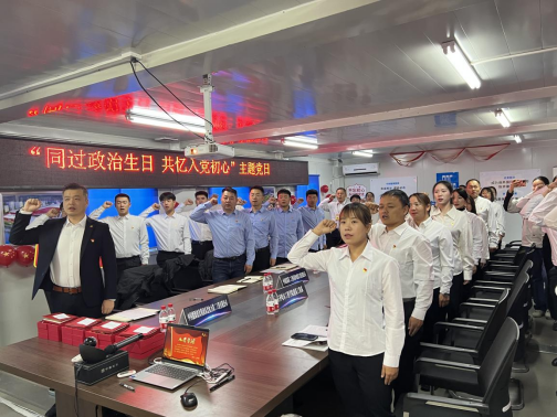 徐明、张德志、宋柄臻、王梓同超代表全体党员共切生日蛋糕,并将党组织的美好祝福与期望送给过政治生日的每一名党员。