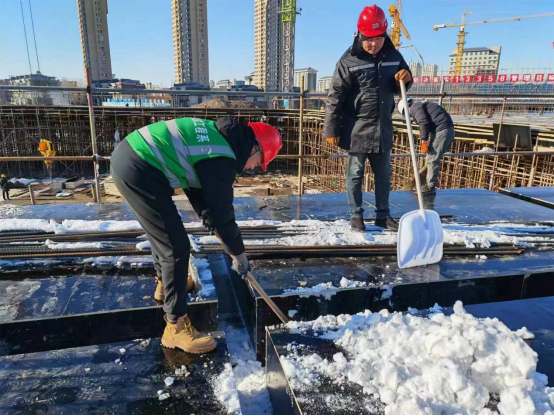 活动开始后,大家积极地投入到活动中。党员们手拿着铁锹与扫帚来到了分配的场地前,开始了清扫活动。虽然雪积得比较很厚,天气比较冷,但这一点也没有影响大家的热情和工作效率。