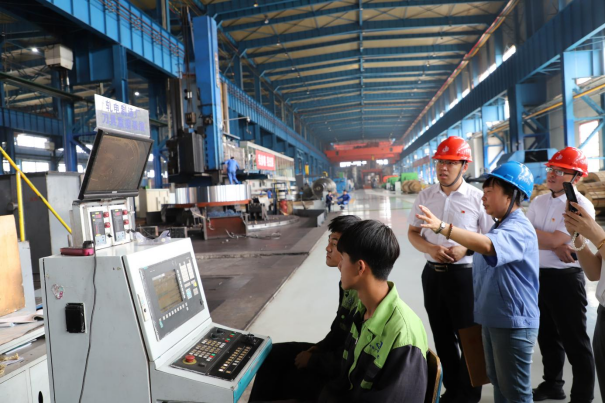 学校一行受到了中国一重的高度重视,中国一重工会女工生活部部长宋照辉,中央企业劳动模范、全国技术能手,龙江工匠王国峰作为讲解员接待了学校师生。在王国峰的带领讲解下,学校师生和企业代表参观了中国一重的王国峰工作室、热处理车间、加氢反应器制造车间、万吨水压机等重要设备设施。