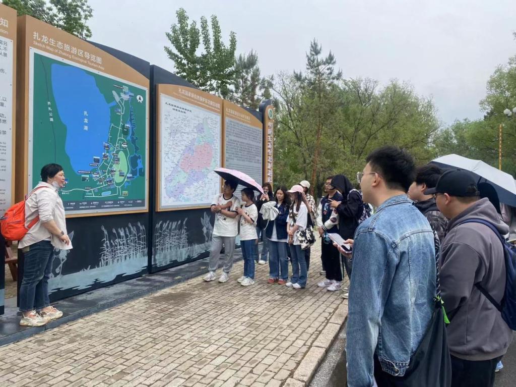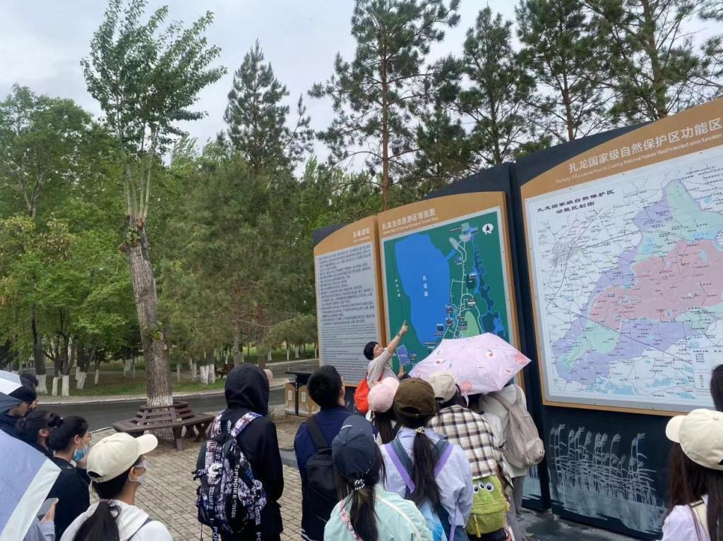上午九时抵达扎龙湿地后,在扎龙生态旅游区导览图前集合,宋兴蕾老师为同学们讲述了扎龙路线以及安全提醒,后以小组为单位组织参观了扎龙湿地的美景,观看了一次放鹤表演建筑工程系风景园林专业宋兴蕾老师鼓励同学们在研学过程中全身心投入,深入思考,希望同学们都能在实地调研中有所收获。